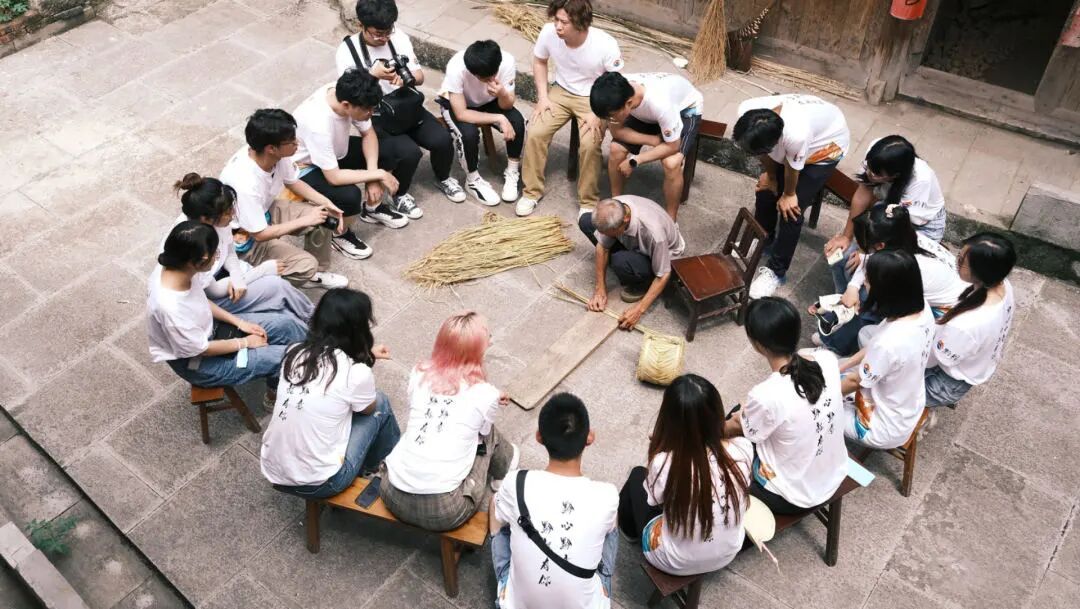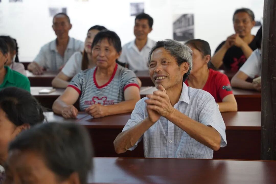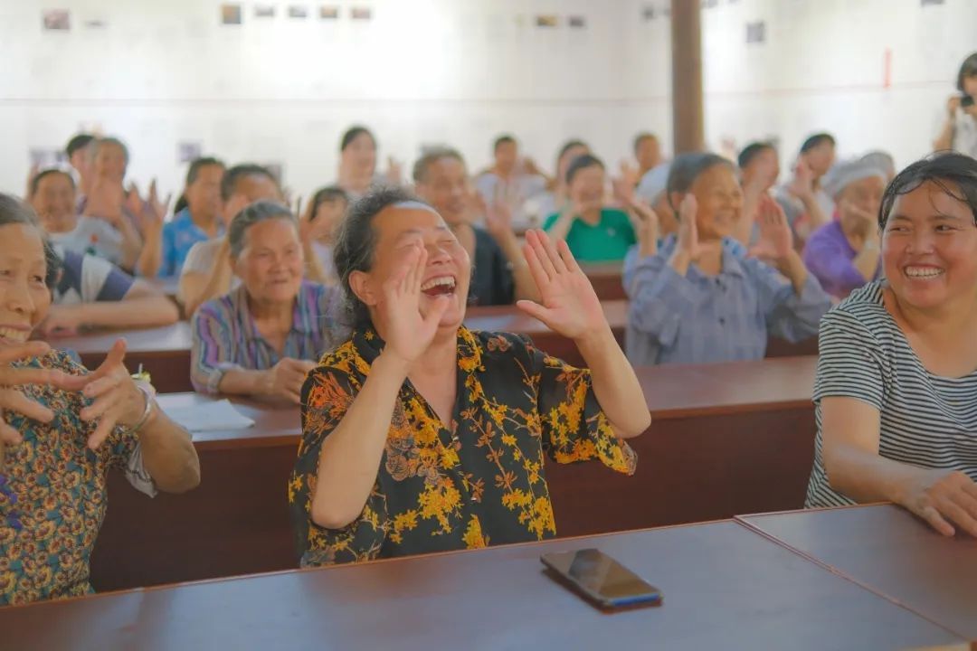 今晚的上课内容是“手机使用指南”,四五十名村民聚精会神地听讲。过了一会儿,他们又几人一组,在实践队员的指导下学习抖音视频的拍摄方法,讨论着如何为寨子里的优质农产品“带货”……